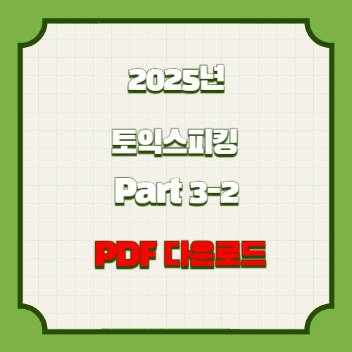 | 2025년 토익스피킹 Part 4-2 전반 요점정리, PDF 다운로드로 합격 확인하기📖 (0) | 2025.04.30 |