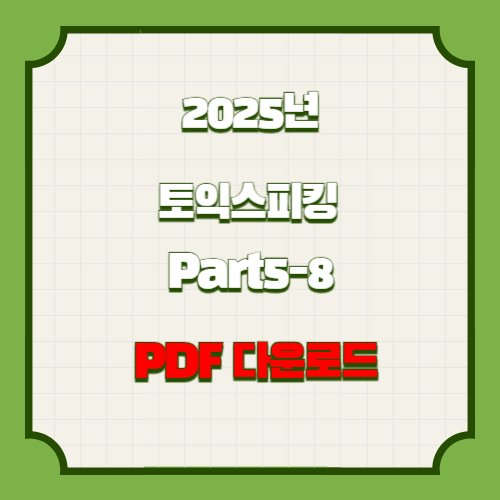 금일 토익스피킹 Part 5-8 업로드를 마무리하였으며, 덧붙여 아래에 추천 게시판 내용도 첨부해 드렸습니다. 하단 목록을 살펴보시어 궁금증 해결에 참조하시길 바랍니다. .