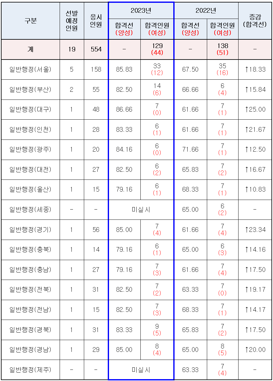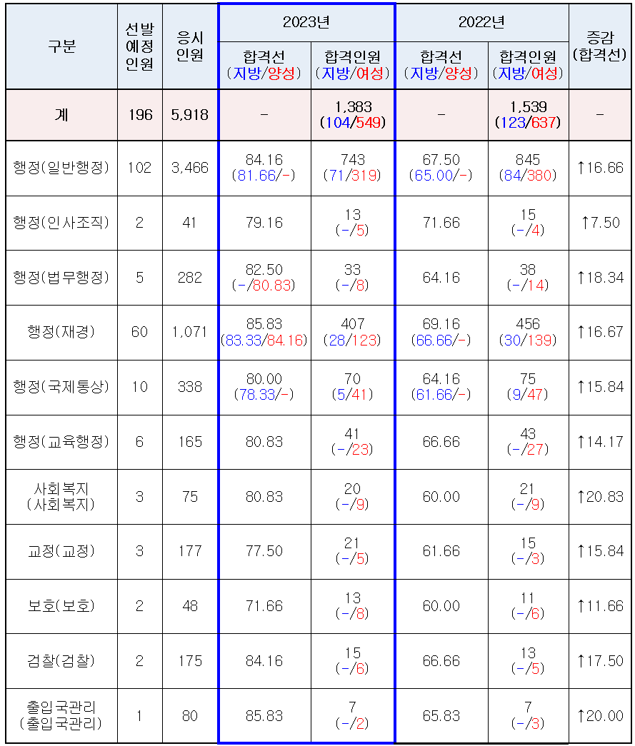 2023년 5급 공채 1차 PSAT 행정직 합격선