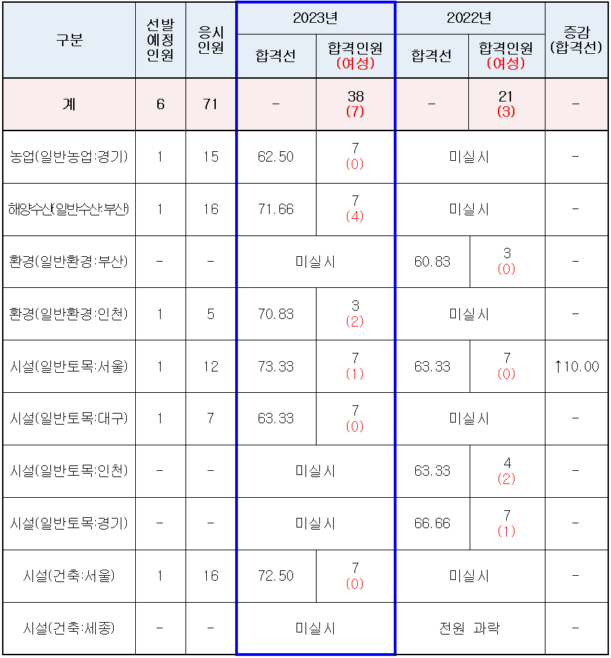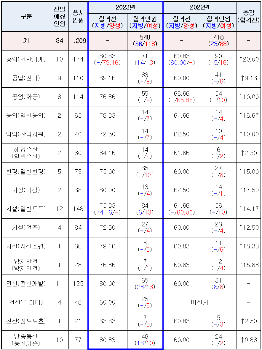 2023년 5급 공채 1차 PSAT 기술직 합격선