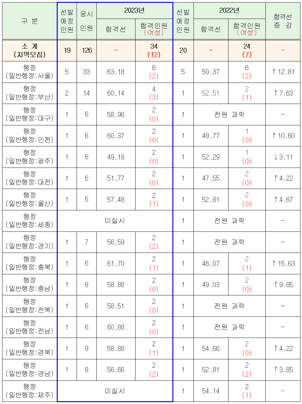 2023년도 5급(행정) 공채 제2차시험 합격자 통계.hwp