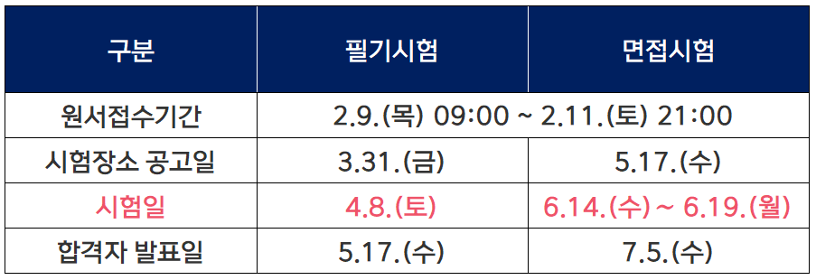 | 합격자 발표일 | 5.17.(수) | 7.5.(수) |